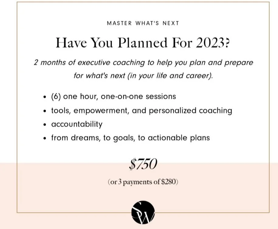 [20:40] Have you planned for next year? Sharnell explains the Master What’s Next 2 month coaching program and what’s included. Sharnell walks you through the personal leadership development coupled with development in your endeavor.